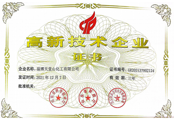 公司產(chǎn)品符合國家的產(chǎn)業(yè)政策,各種手續(xù)齊全,通過了環(huán)保、衛(wèi)生、消防、安全生產(chǎn)許可等各項驗收,企業(yè)化學(xué)品安全標準化三級達標驗收,并且通過了ISO9001質(zhì)量管理體系認證、ISO14001環(huán)境管理體系、ISO45001職業(yè)健康管理體系,先后被有關(guān)部門授予“市級重合同守信用企業(yè)”“消費者滿意單位”“質(zhì)量、計量管理先進單位”“勞動關(guān)系和諧企業(yè)”“企業(yè)免檢單位”“淄博市專精特新中小企業(yè)”“山東省化工明星單位”“山東化工發(fā)展?jié)摿?0強”“淄博市智能車間”“山東省創(chuàng)新型中小企業(yè)”“科技型中小企業(yè)”“高新技術(shù)企業(yè)”“山東省專精特新”等稱號。